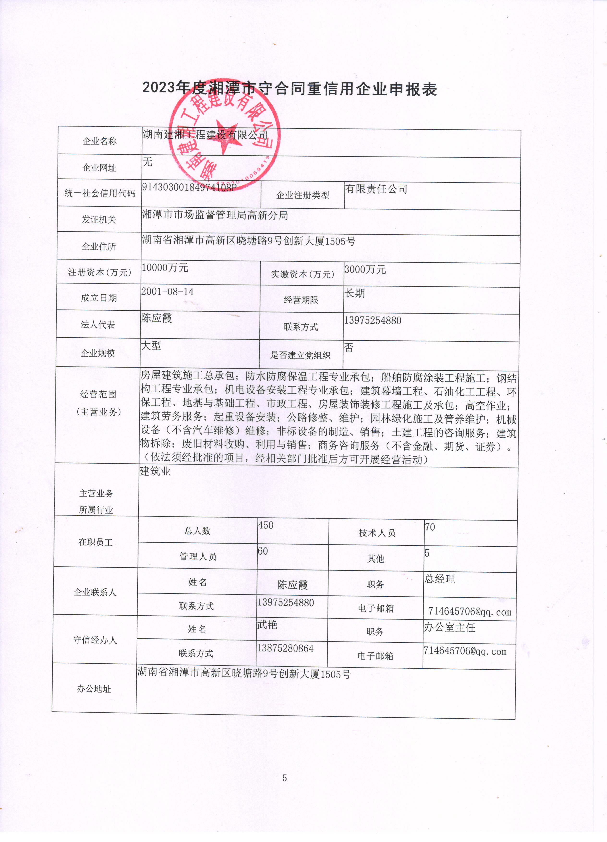 本企業(yè)根據(jù)《湘潭市守合同重信用企業(yè)申報(bào)規(guī)定》等編制 2023 年度企業(yè)信用報(bào)告書,并保證本報(bào)告書內(nèi)容真實(shí)、準(zhǔn)確、完整。