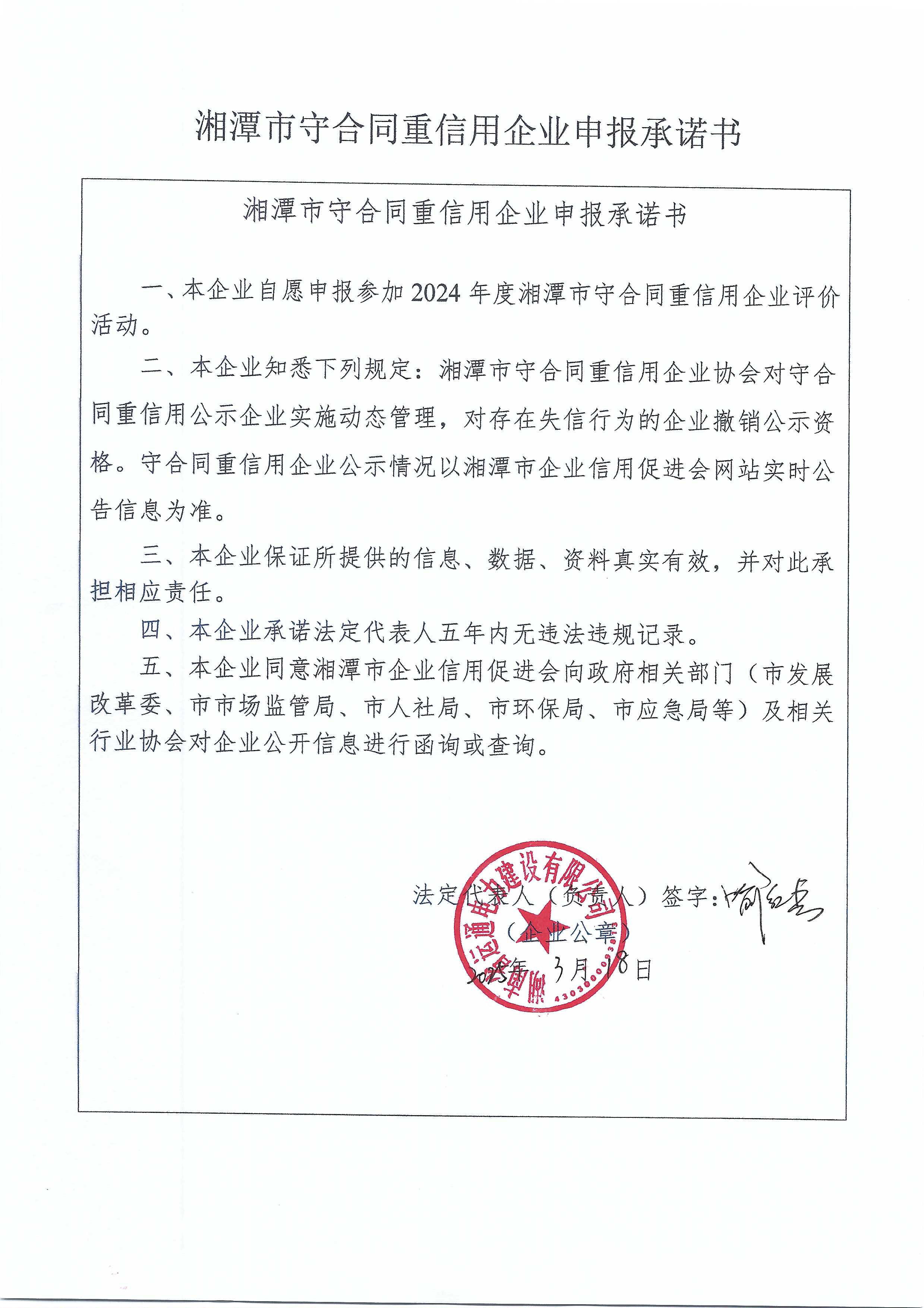 本企業(yè)根據(jù)《湘潭市守合同重信用企業(yè)申報規(guī)定》等編制 2024 年度企業(yè)信用報告書,并保證本報告書內(nèi)容真實、準確、完整。
