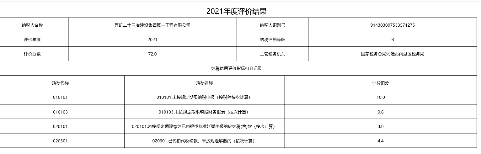 企業(yè)納稅信用等級報告: