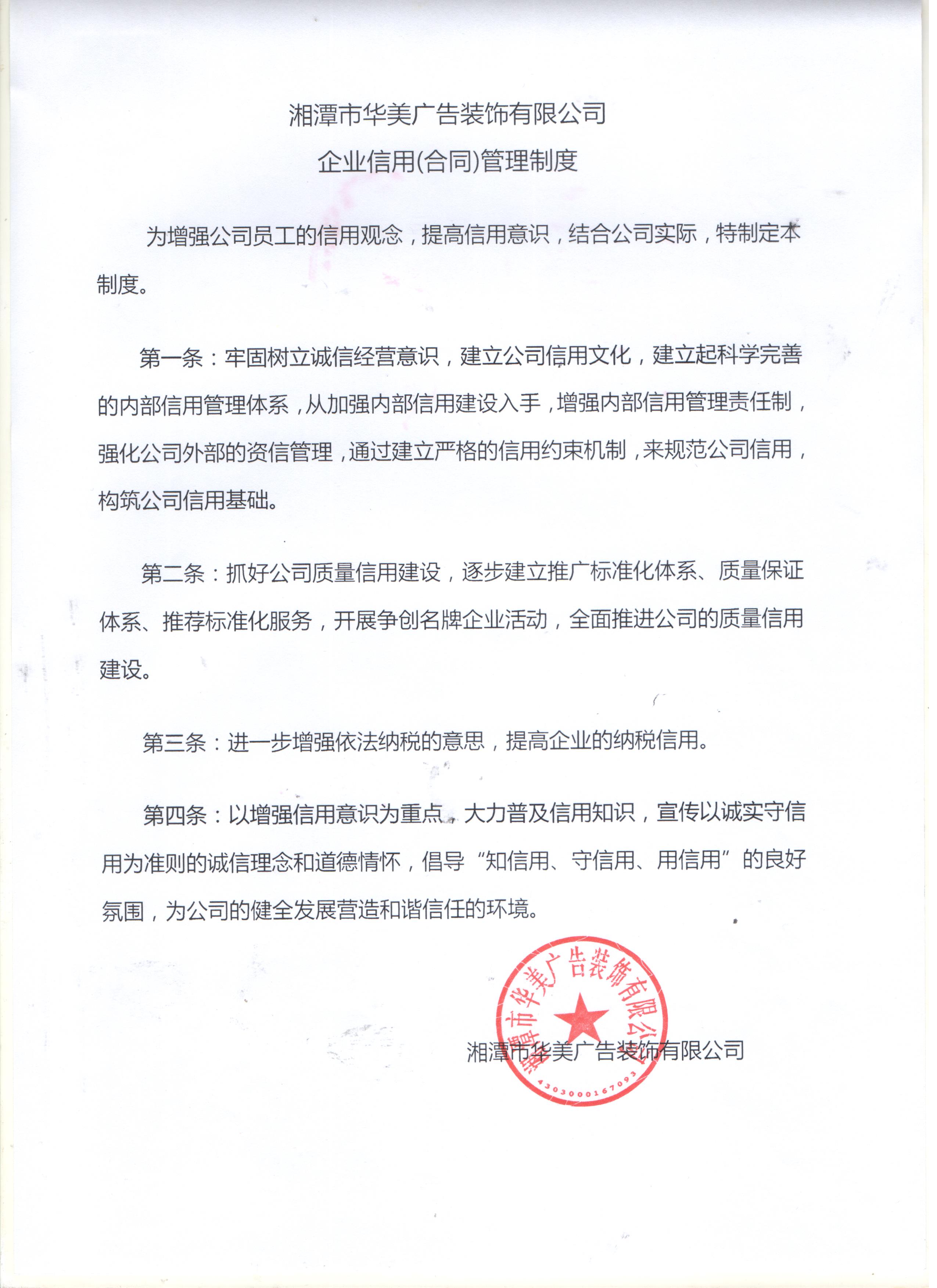 企業(yè)信用(合同)管理制度:
