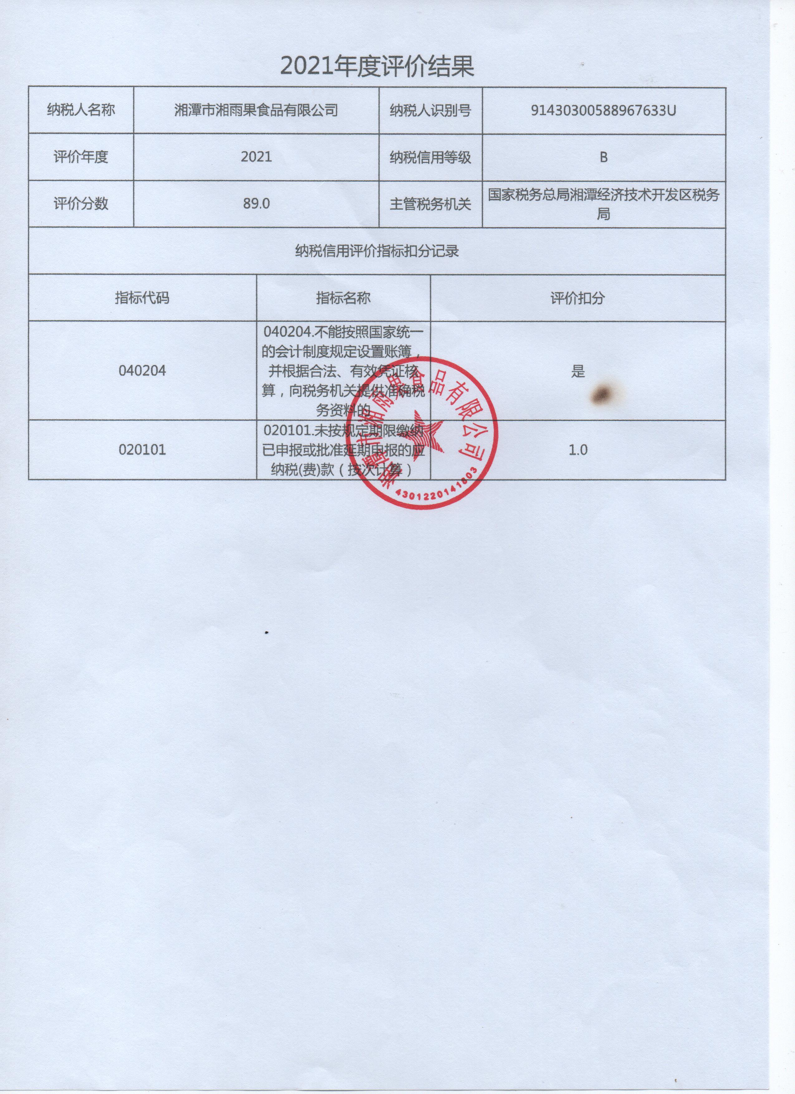 企業(yè)納稅信用等級報告: