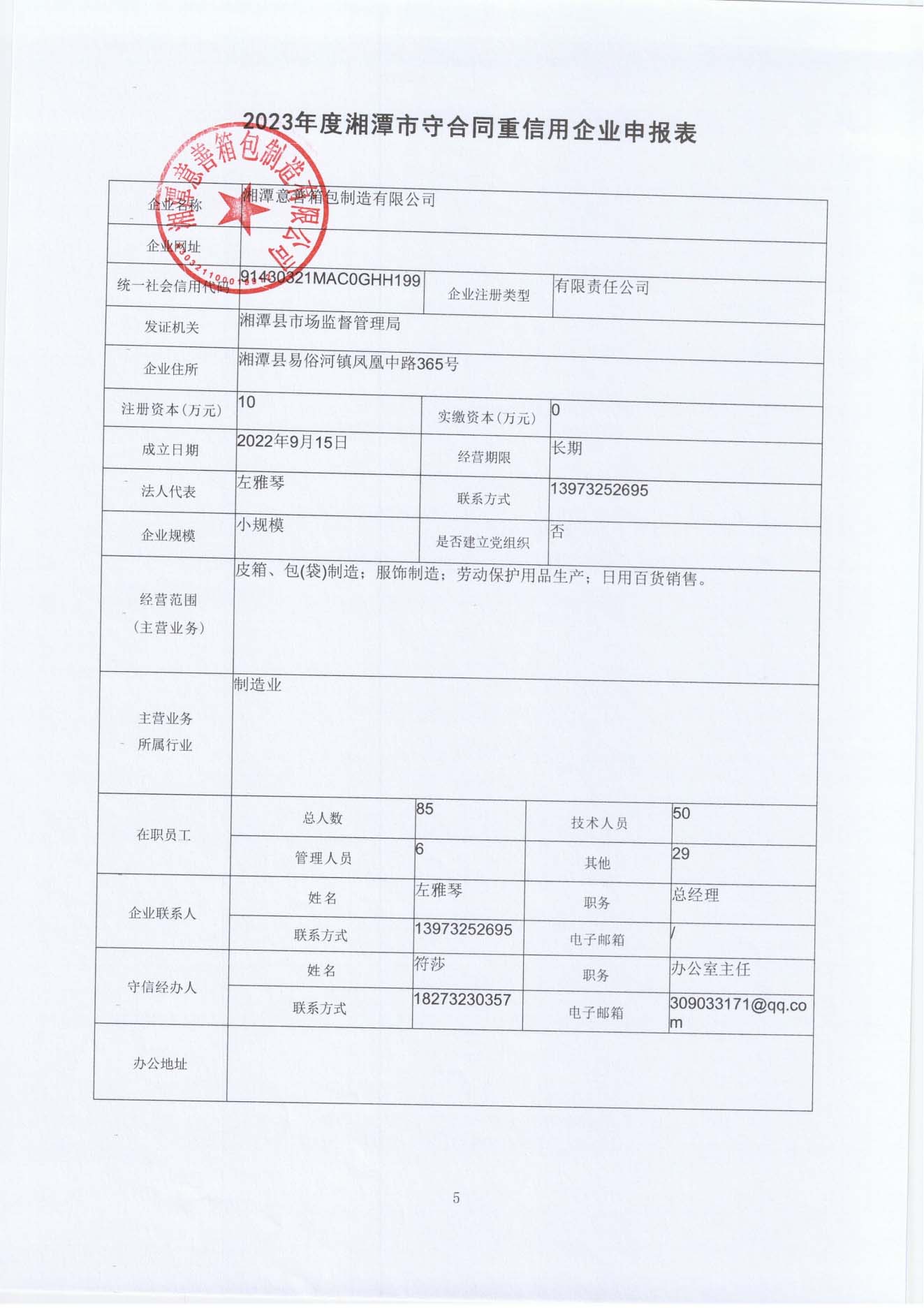 本企業(yè)根據(jù)《湘潭市守合同重信用企業(yè)申報(bào)規(guī)定》等編制 2023 年度企業(yè)信用報(bào)告書,并保證本報(bào)告書內(nèi)容真實(shí)、準(zhǔn)確、完整。